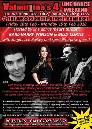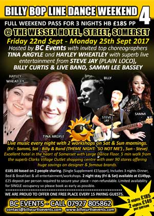 In addition to his award nominated solo shows, Billy is available as a duo alongside the fantastic Sammi Lee Bassey, or as a full live band. Whatever your requirements, Billy will produce a line dance music show not to be missed!